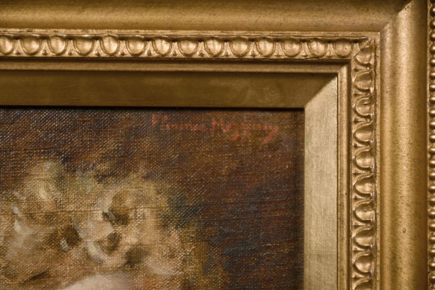 Florence Mezzara/Koesclin (1857-1896), A pair of head studies of a children, oil on canvas laid down, indistinctly signed, 8" x 7", (2).