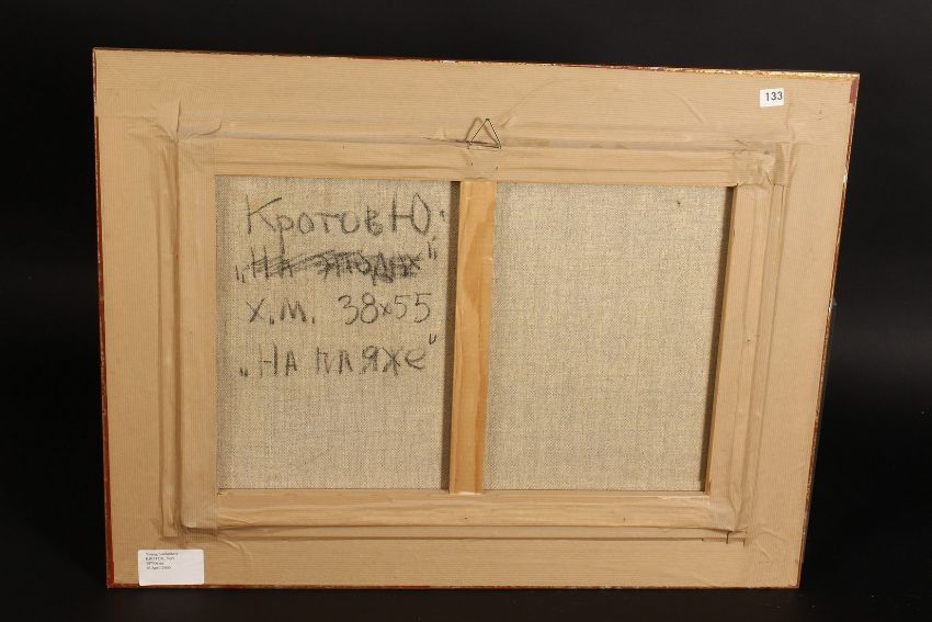 Yuri Krotov (b.1964) Russian, 'Young Sunbathers', signed oil on canvas 15" x 21.5", 38 x 55cm.