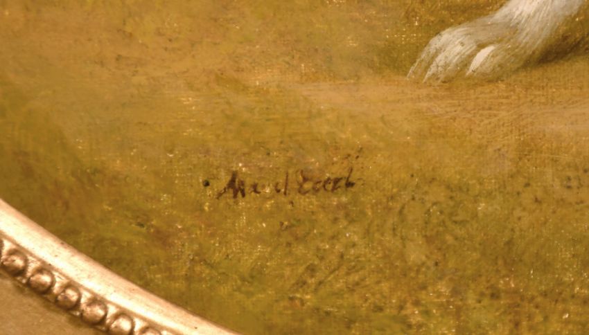 Maud Earl (1864-1943) A Poised terrier in a landscape, oil on canvas, signed, 12" x 16", (oval).