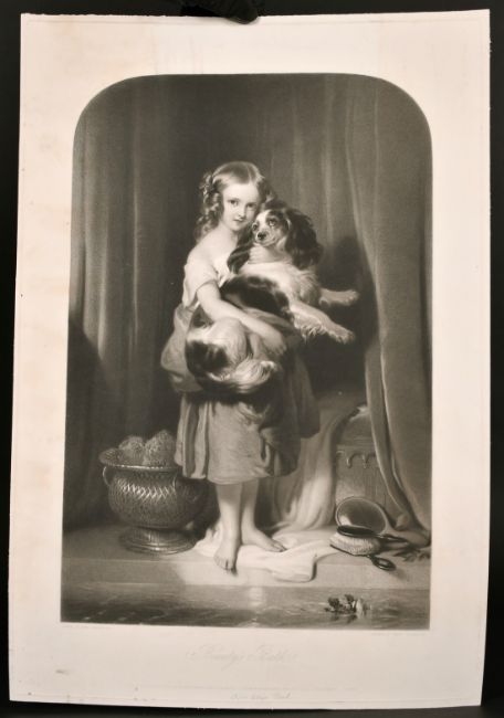 Samuel Cousins after Landseer, 'Beauty's Bath', a young girl holding a spaniel, mixed method engraving, inscribed, 25.25 x 17.25", (unframed).