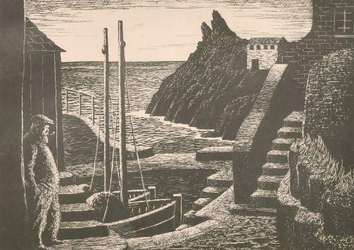 20th century, A woodblock print of a harbour scene, signed 'Morton' in pencil and inscribed 'Pol Perro', 5.5" x 7.25".