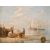 P. C. Dommersen 19th century, A scene of figures unloading a catch with Dutch fishing boats beyond, oil on oak panel, signed with initials, and bearing artists wax seal verso, 6" x 8".