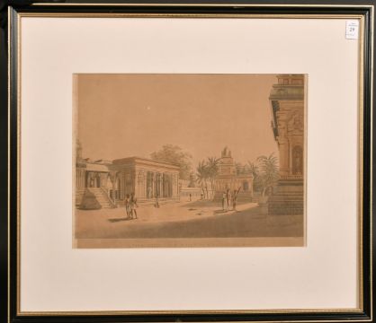 After Col. Ward (19th century) 'A View Within the Walls of A Pagoda, Madras', Aquatint, 11.5" x 16.5".