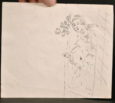 Manner of Marie Laurencin, A sketch of a reclining female figure, 7" x 8.5", and three other sketches by various hands, Unframed, (4).