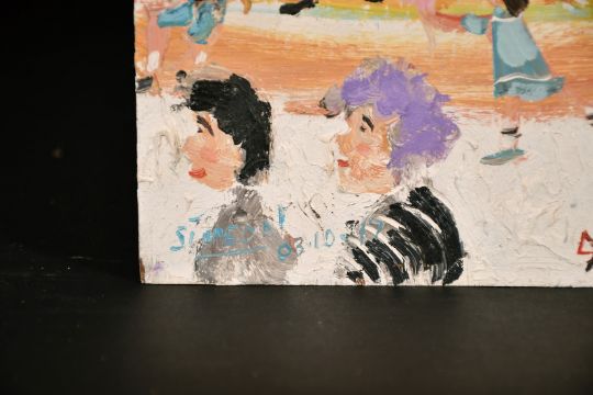 Simeon Stafford (b. 1956) 'Fair of Penzance', oil on panel, signed and dated '03/10/17', signed and inscribed verso, 18" x 24", (unframed).