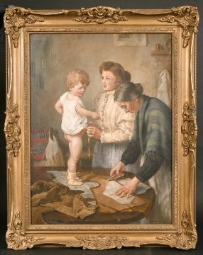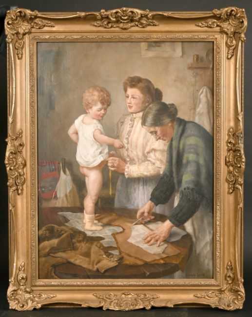 Sydney Currie (act. 1892-1955) British, 'The New Suit', oil on canvas, signed, 24" x 18".