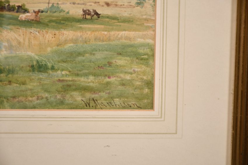 William Mathison (1825-1893) Cattle grazing by a mountain lake, signed, 14" x 21".