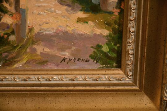 Yuri Kuchkin (b. 1942) Russian, 'A Corner in the Blooming Garden', oil on board, signed, 11" x 9".