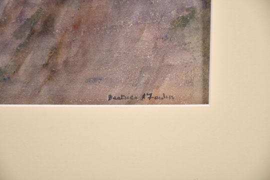 20th century, Figures conversing by a boat moored at a quay, watercolour, signed 'Beatrice Fowler', 21" x 14".