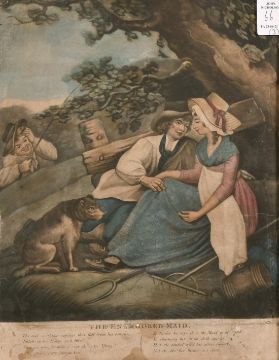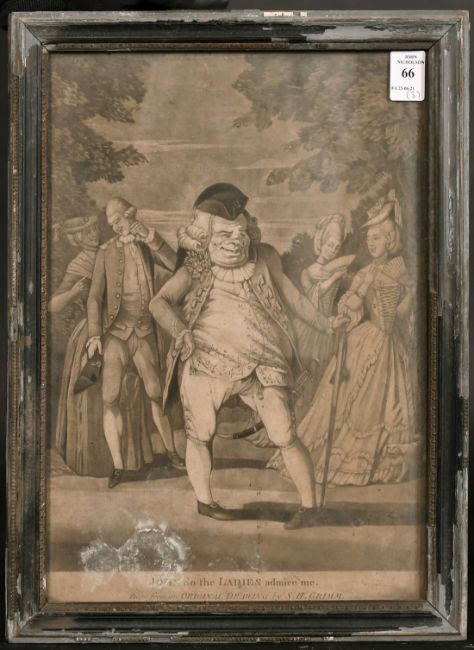 After S. H. Grimm, 18th century mezzotint (a droll) + another similar, together with a hand coloured mezzotint, the first 12" x 9.75", the others both 13.5" x 9.5", (all A/F) (3).