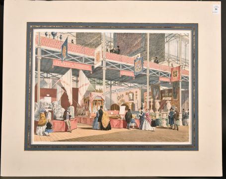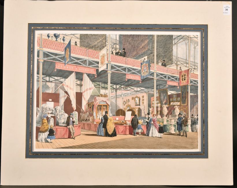 19th century, A coloured print of the great exhibition showing the stands of Guernsey and Jersey, Malta and Ceylon, 13.5" x 19".
