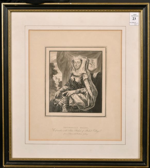 A pair of prints of John and Devorguilla Baliol, founders of Baliol College Oxford, 9" x 6".