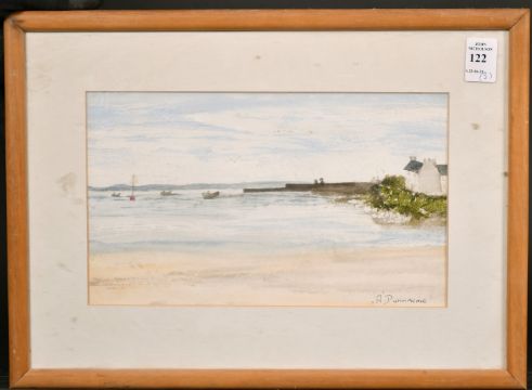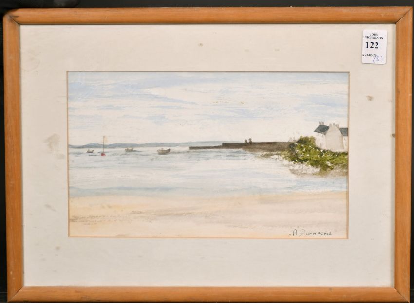 John Hamilton Glass (1820-1885) British, Figures by a river with a windmill and cottage, watercolour, signed, 13" x 20", along with a harbour scene and a pencil drawing of Herstmonceux castle by a different hand, 6" x 10", 13" x 18", (3).