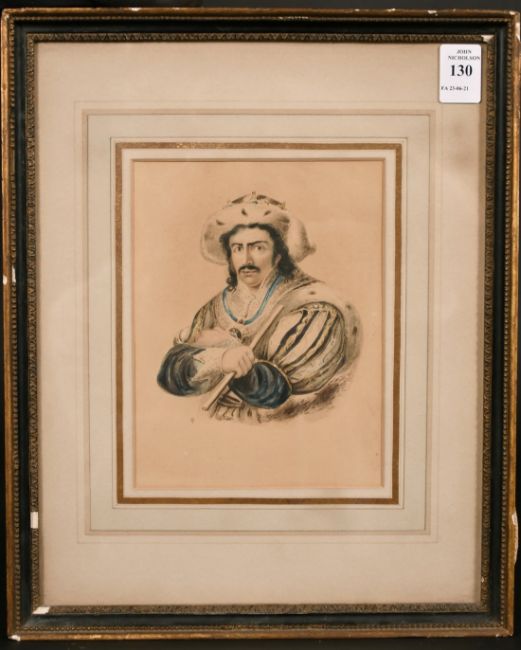19th century, possibly a study of Edmund Kean as Richard III, indistinctly inscribed verso, watercolour, 7" x 5".