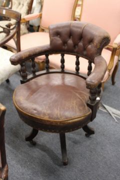A Victorian mahogany framed and leather upholstered swivel office desk chair