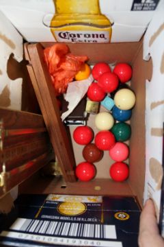 A 6ft x 3ft snooker table with folding legs and accessories