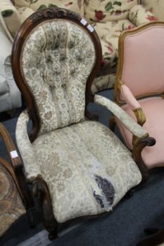 A Victorian mahogany framed spoon back armchair