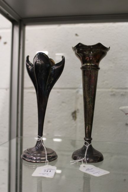 Two bud vases, one silver, one plate silver (2)