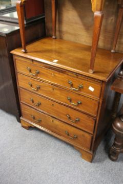 A George III mahogany small chest of drawers with brushing slide over four graduated long drawers on bracket feet