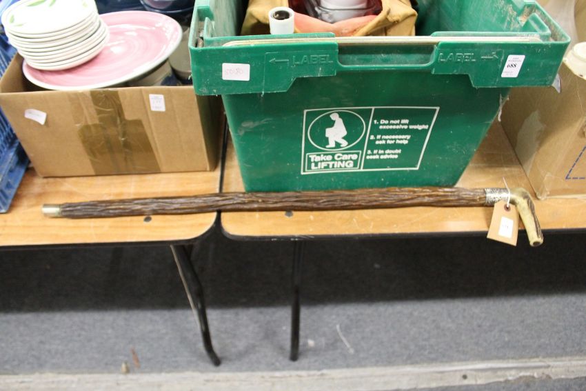 A walking stick with antler handle and silver collar