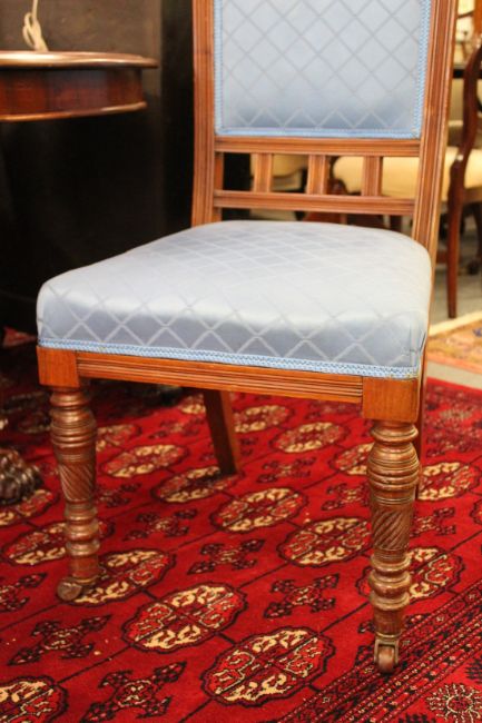 A set of four Victorian walnut dining chairs with upholstered backs and seats