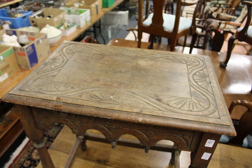 A carved oak occasional table