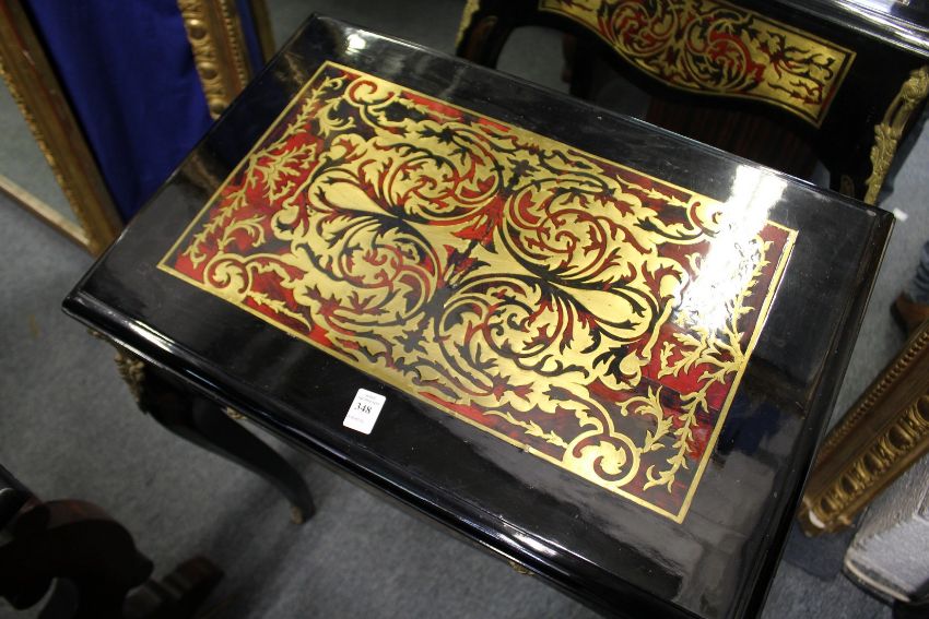 A Boulle style single drawer side table on cabriole legs