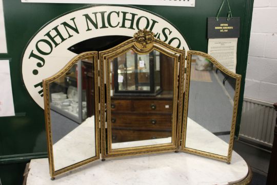A gilt framed three fold dressing table mirror