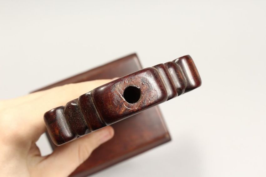 A CHINESE CARVED AND PIERCED WOODEN STAND, 12ins high.