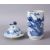 A 19TH CENTURY OR EARLIER CHINESE BLUE & WHITE PORCELAIN VASE & COVER, the vase with views of a landscape, but the top cut, the cover with a lion dog, poss original, overall 15cm