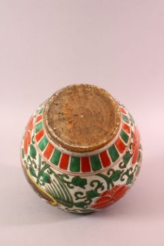 A MING STYLE CHINESE PORCELAIN WUCAI DECORATED GINGER JAR - with phoenix and flora, 22cm