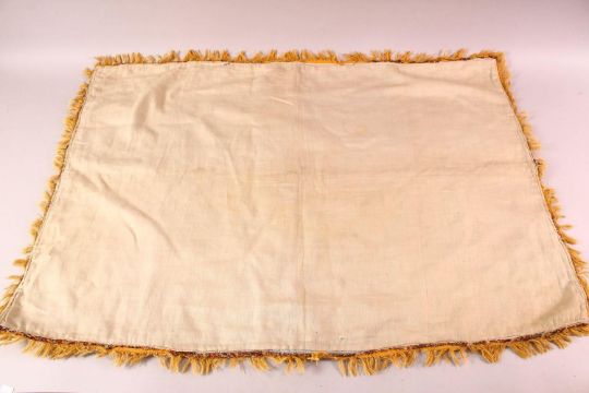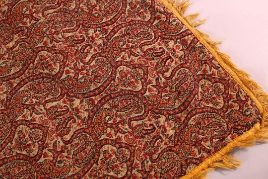 A 19TH CENTURY KASHMIR SHAWL FRAGMENT, with tassel borders, 87cm x 60cm