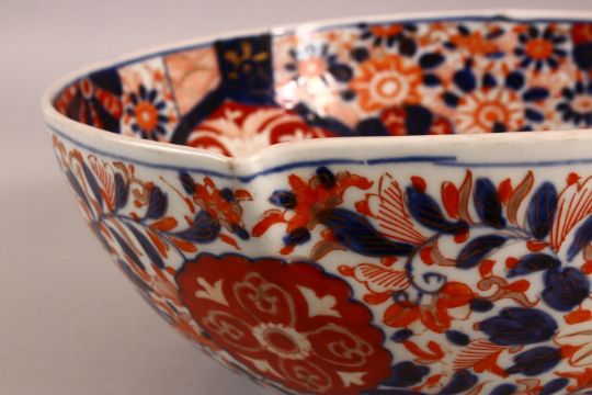 A JAPANESE MEIJI PERIOD IMARI PORCELAIN BOWL - decorated with typical imari palate -28cm diameter