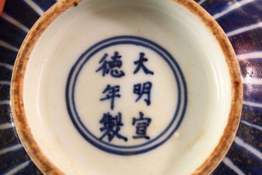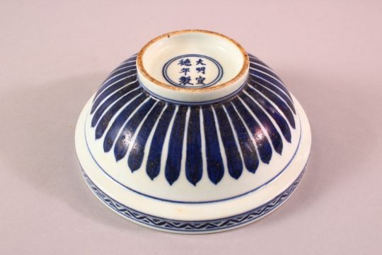 A CHINESE MING STYLE BLUE & WHITE PORCELAIN BOWL FOR ISLAMIC MARKET - decorated with motif decoration - base with a six character mark - 17cm
