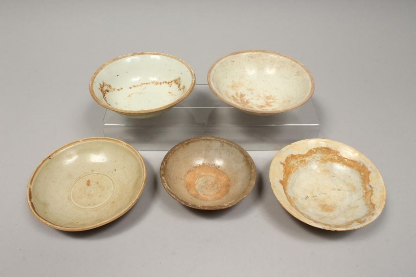 FIVE CHINESE POTTERY BOWLS.