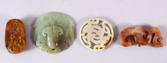 FOUR VARIOUS JADE AND HARDSTONE PIECES.