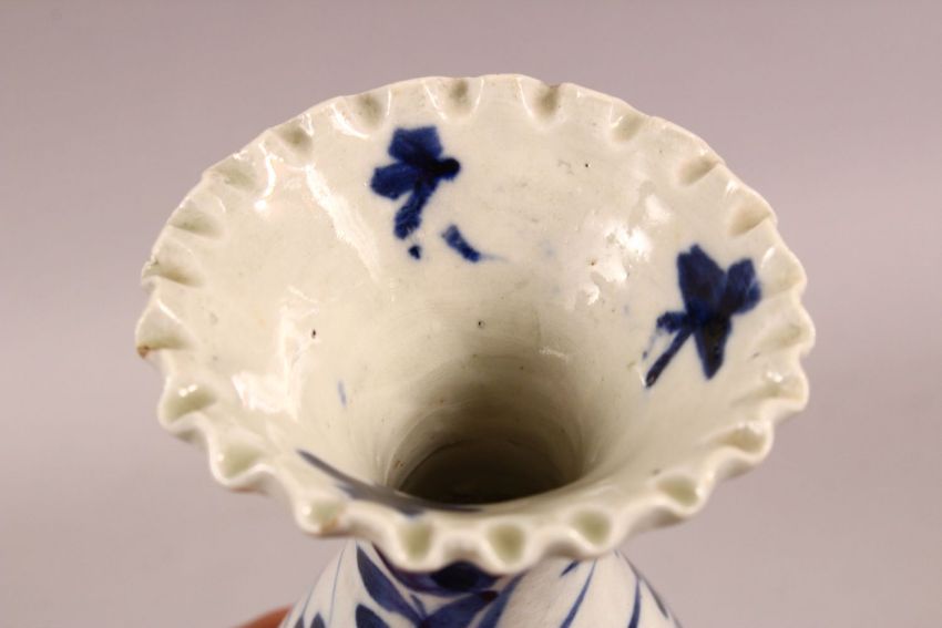 A 19TH / 20TH CENTURY CHINESE FLARED RIM PORCELAIN VASE - decorated with stylized floral display - 16.5cm high