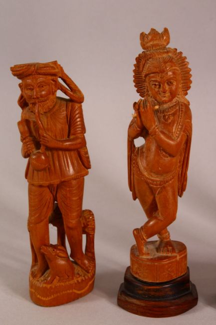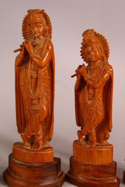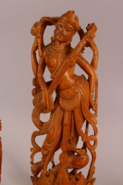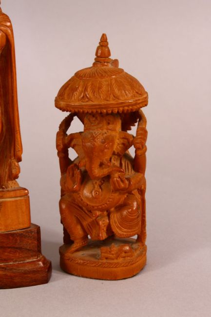 A MIXED LOT OF CARVED WOODEN INDIAN GOD / GODDESS FIGURES - The largest 28cm high down to 12cm ganesh. (6)