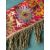A CENTRAL ASIAN BED STACK BORDER, Uzbekistan Susani, cotton embroidered on a red cotton ground with fringe, 4ft 3in wide, 2ft 5in drop.