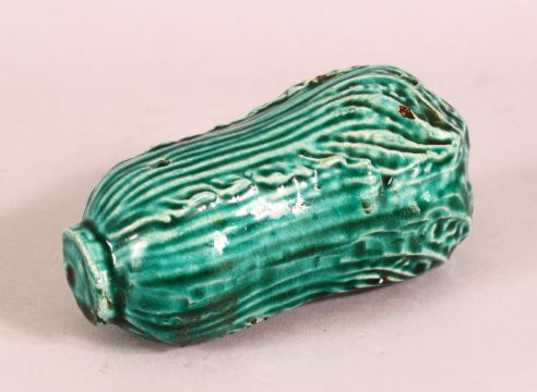 A CHINESE TURQUOISE GLAZED FRUIT FORMED PORCELAIN WATER DROPPER - in the form of a fruit or vegetable, 13cm