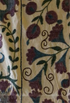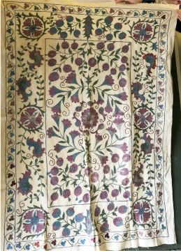 A FLORAL EMBROIDERED COTTON BEDSPREAD, 20th Century, Susani, 5ft x 2ft 4ins.