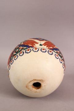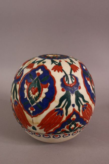 A TURKISH IZNIK POTTERY DECORATED MOSQUE BALL HANGING - 15CM