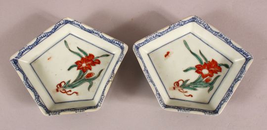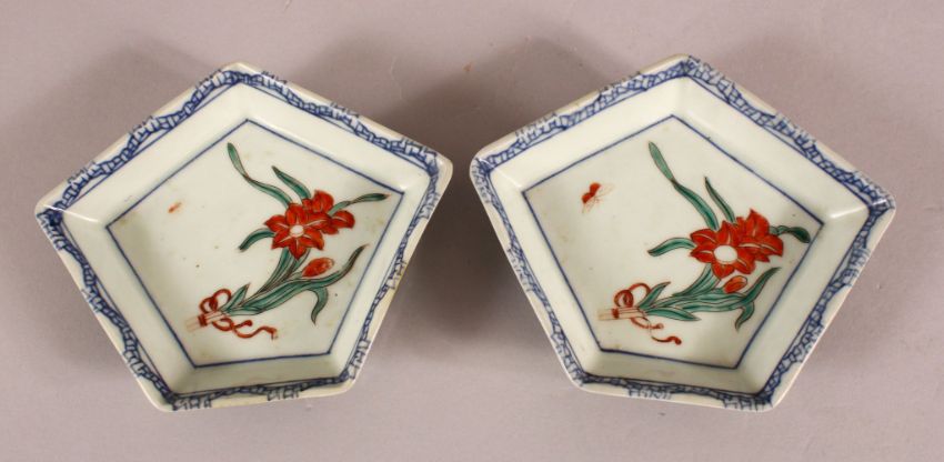 A PAIR OF JAPANESE MEIJI PERIOD PORCELAIN SWEET MEAT PLATES - both decorated with simple iris display 15cm