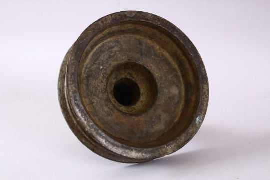 A GOOD INDIAN BRONZE OIL LAMP, Signed and dated to the central section, 17cm high x 13.5cm diameter.