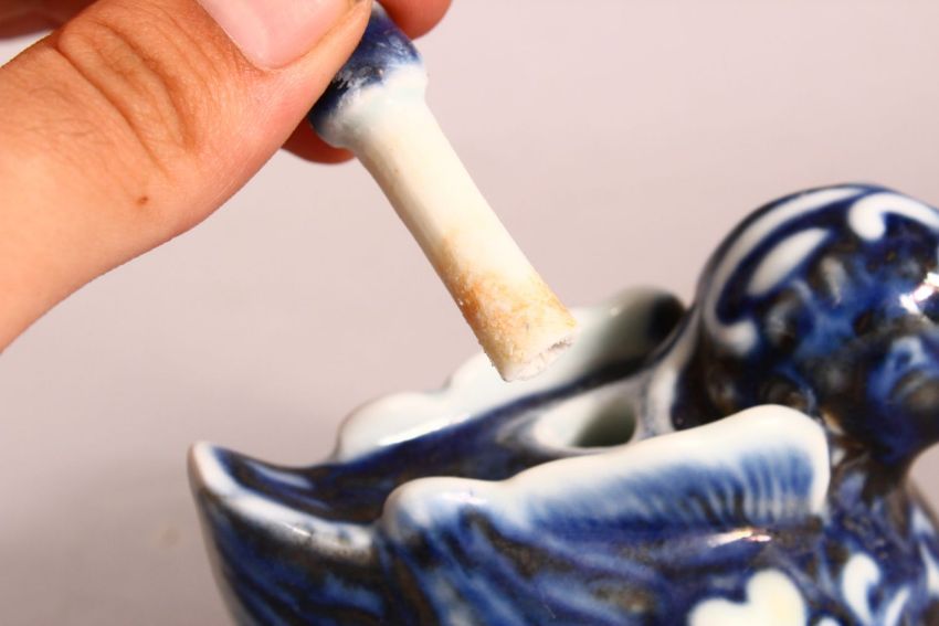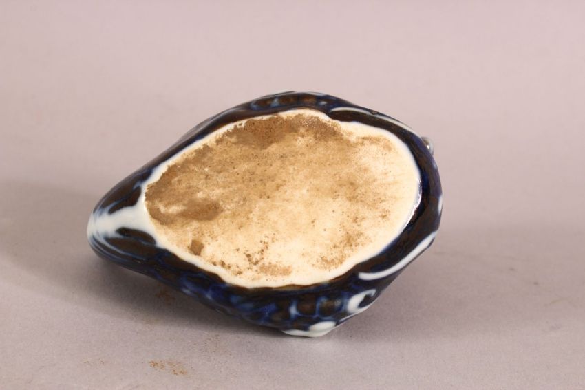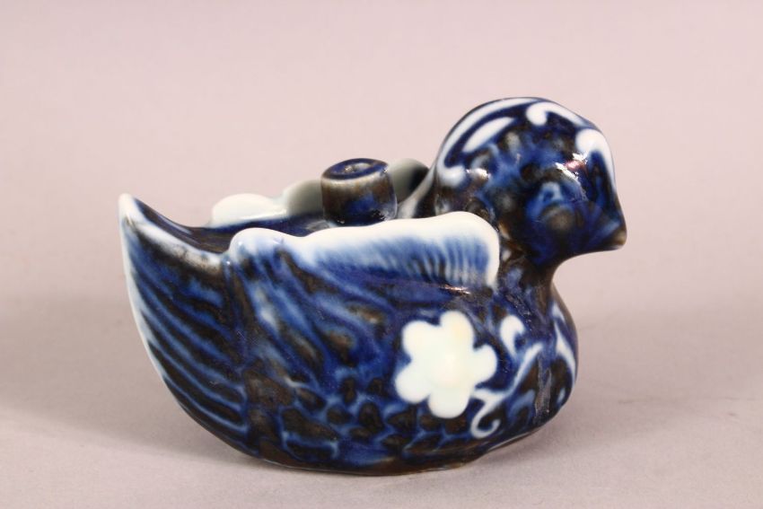 A CHINESE BLUE AND WHITE WATER DROPPER in the form of a bird, 10cm long.