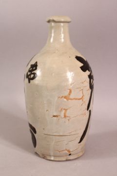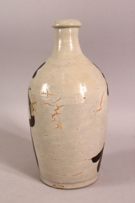 A JAPANESE CALLIGRAPHY PORCELAIN SAKE BOTTLE - with calligraphy to the body, 22cm