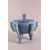 AN UNUSUAL CHINESE CELADON GLAZED BLUE PORCELAIN CENSER, with twin handles, body with archaic decoration, stood upon tripod elephant mask feet, 24.5cm x 27cm.