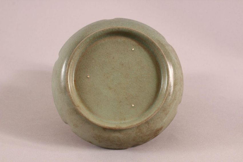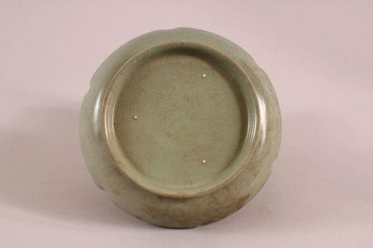 A CHINESE CELEDON BRUSH WASHER, 13cm diameter.