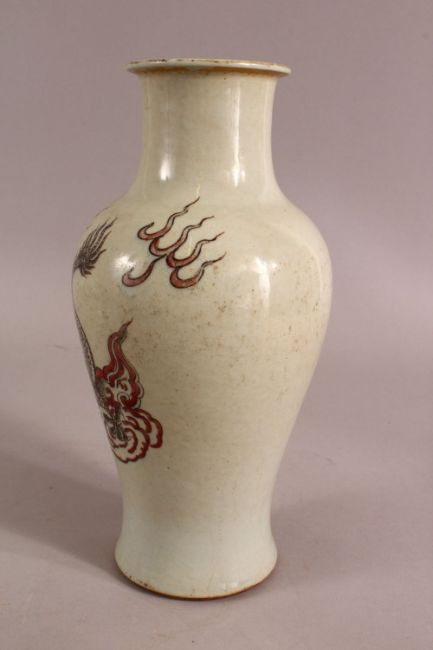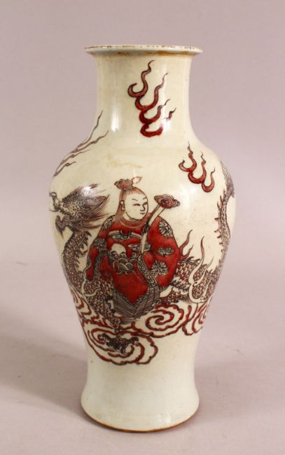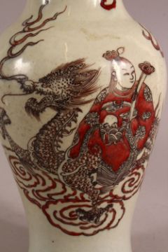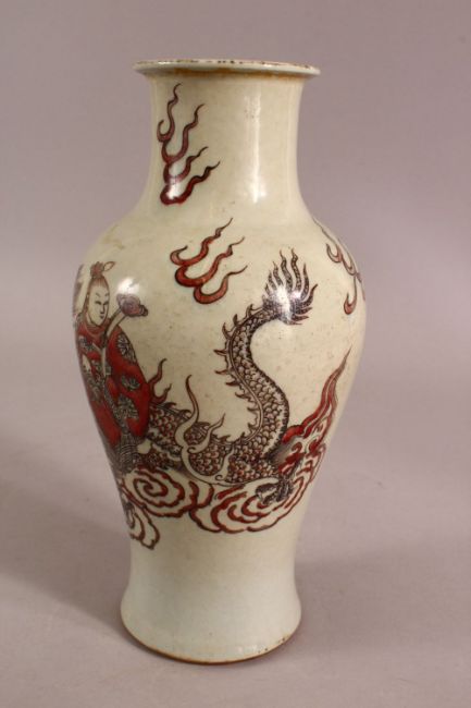 A CHINESE REPUBLIC STYLE FAMILLE ROSE PORCELAIN VASE - decorated with guanyin upon a dragon - 25.5cm
