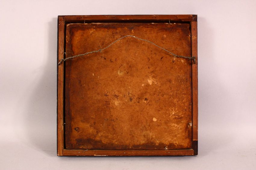 A 19TH CENTURY PERSIAN PORCELAIN TILE PANEL - depicting a figure upon horseback - framed 29cm square